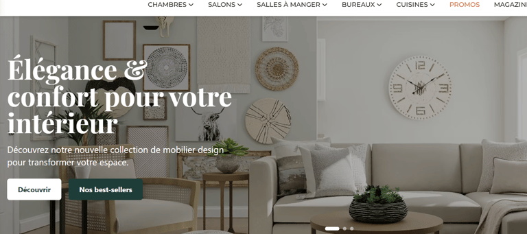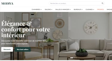 Création d'une maquette de site vitrine + commercial pour un magasin de vente de mobilier moderne situé en Belgique